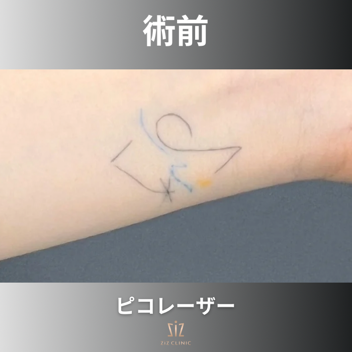 若いころに軽いノリでワンポイントタトゥーを複数入れた20代の患者様で、既にいくつかタトゥー除去を担当させていただいているリピーターさまです。
