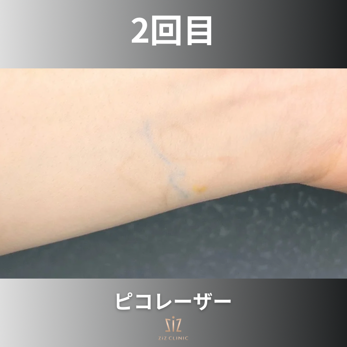 色によって消える波長が異なるので、ピコレーザーを使用しそれぞれに合わせた波長で除去していきます。