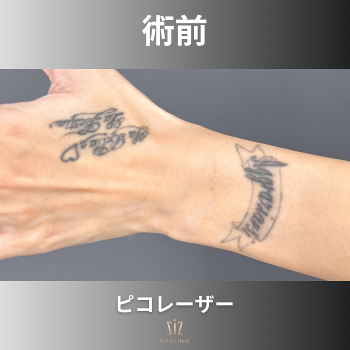 17年前にお母様からの誕生日プレゼントで左手にタトゥーを入れた30代女性の患者様