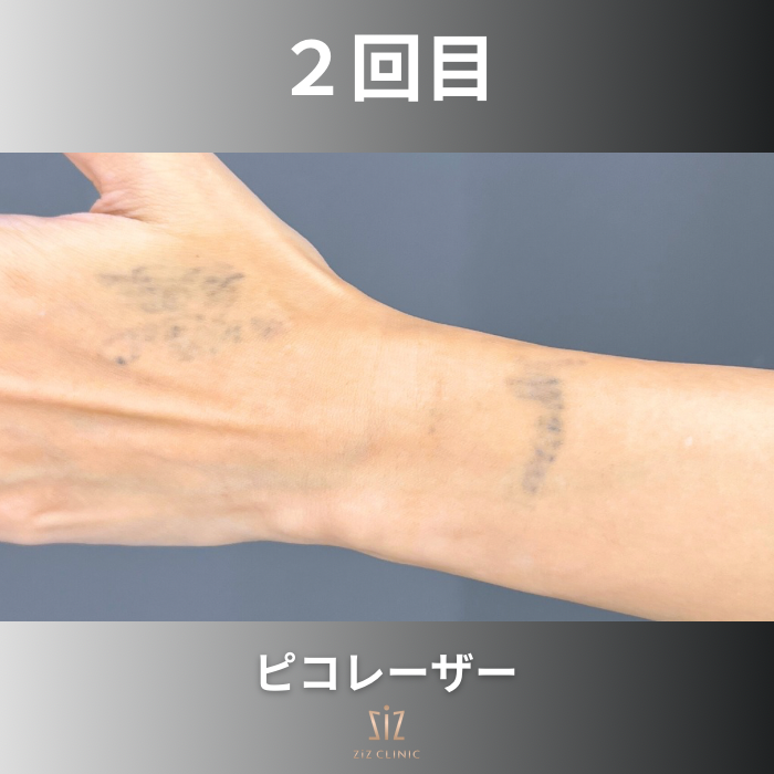 17年前にお母様からの誕生日プレゼントで左手にタトゥーを入れた30代女性の患者様です。