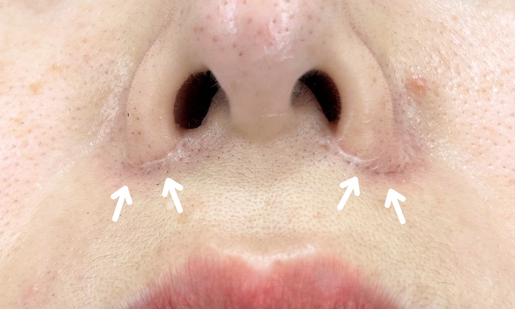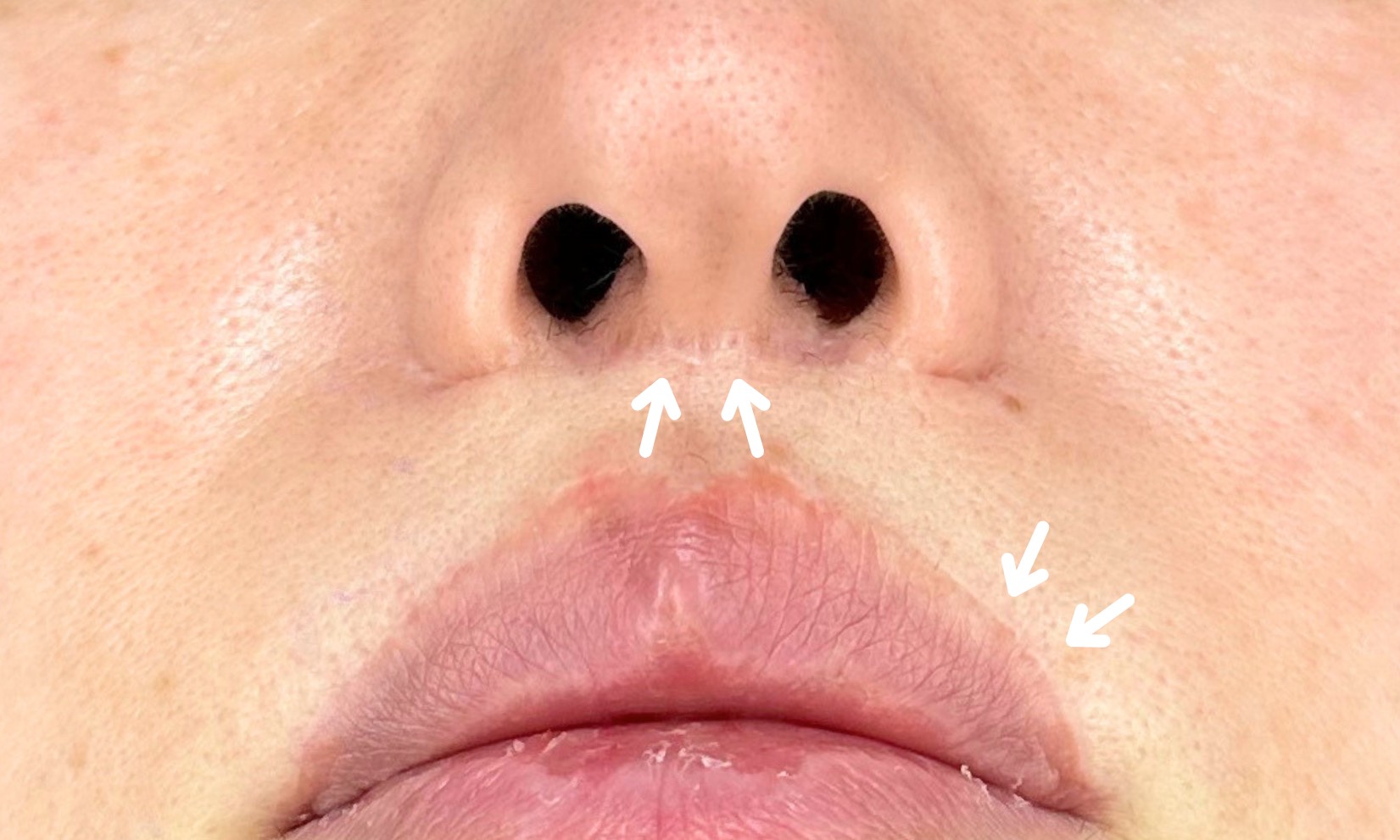 - 鼻翼縮小や人中短縮、目頭切開の傷が気になる人